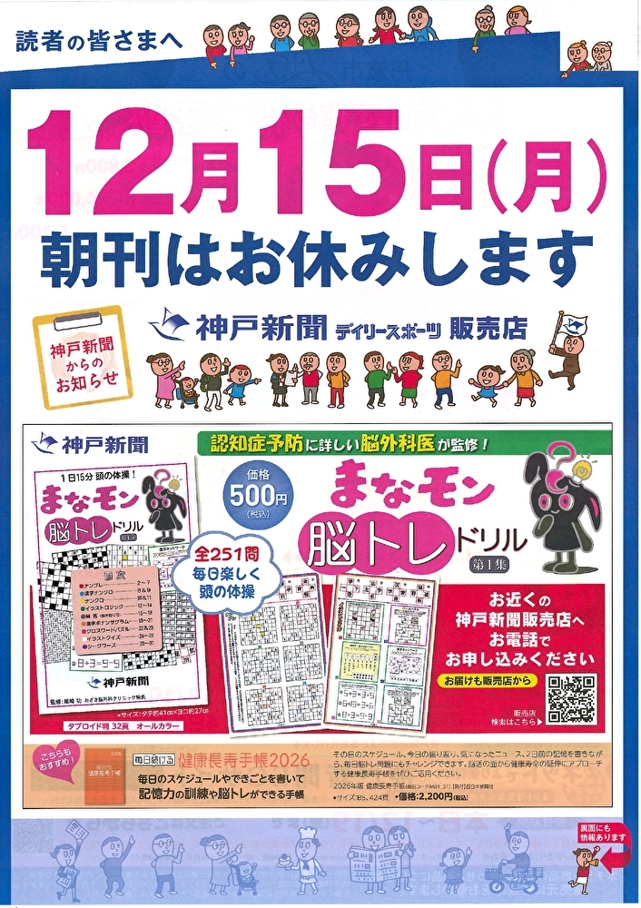 また、毎日楽しく頭の体操!「まなモン脳トレドリル」、脳活の面から健康寿命の延伸にアプローチする「健康長寿手帳2026」も、おすすめします!