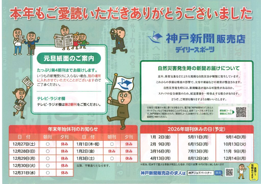 年末年始休刊をお知らせさせていただきます。