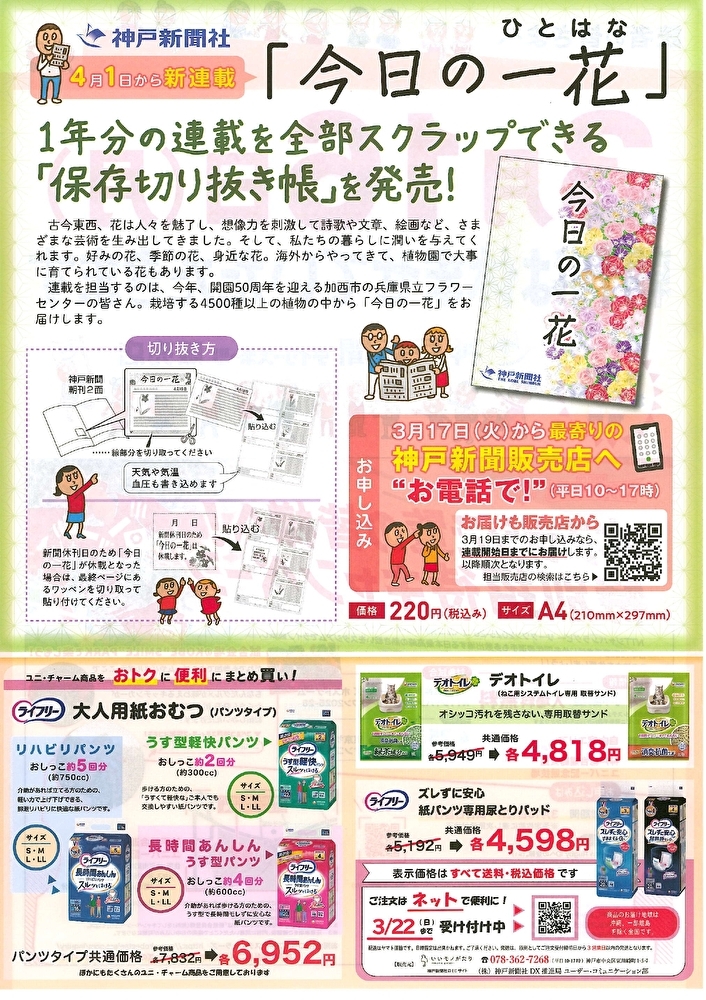 また、大人用紙おむつ等おトクに便利にまとめ買い、ご注文は神戸新聞ECサイト「いいモノがたり」で!お見逃しなく!