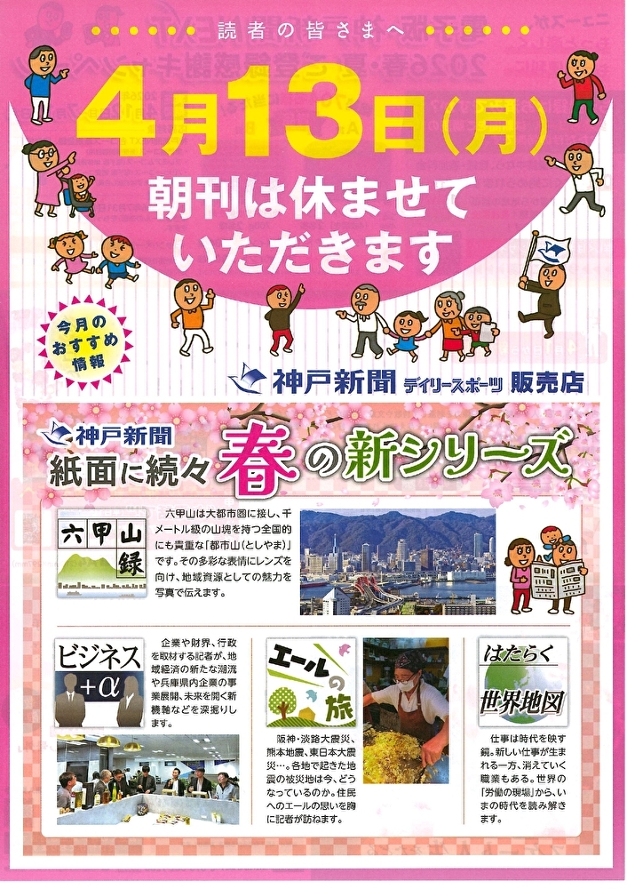 4月13日(月)の朝刊はお休みさせていただきます。